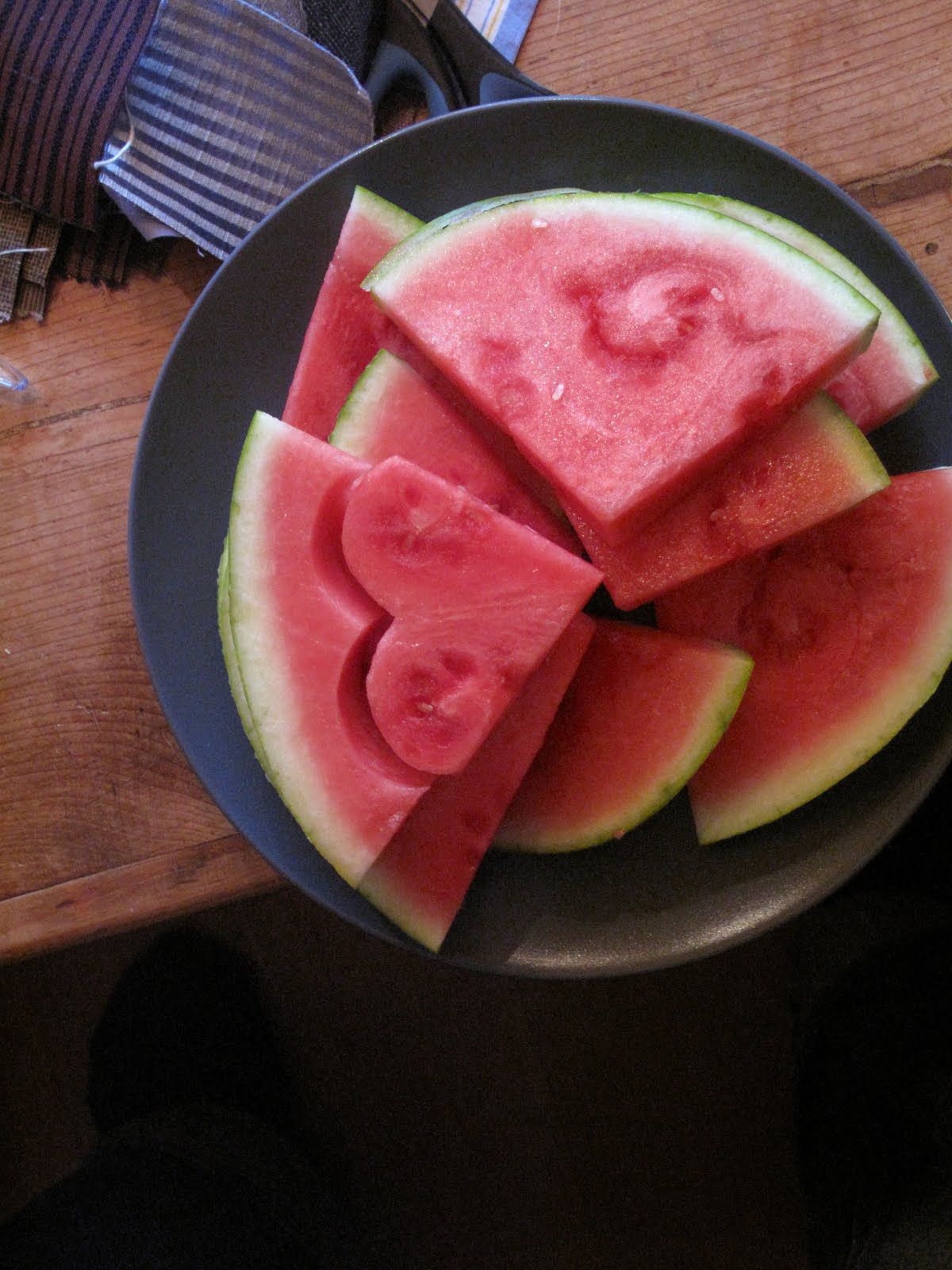 Then there was the watermelon hubby and I had last night that one of the pieces broke into a perfect heart! All on its one, we did not cut this at all: