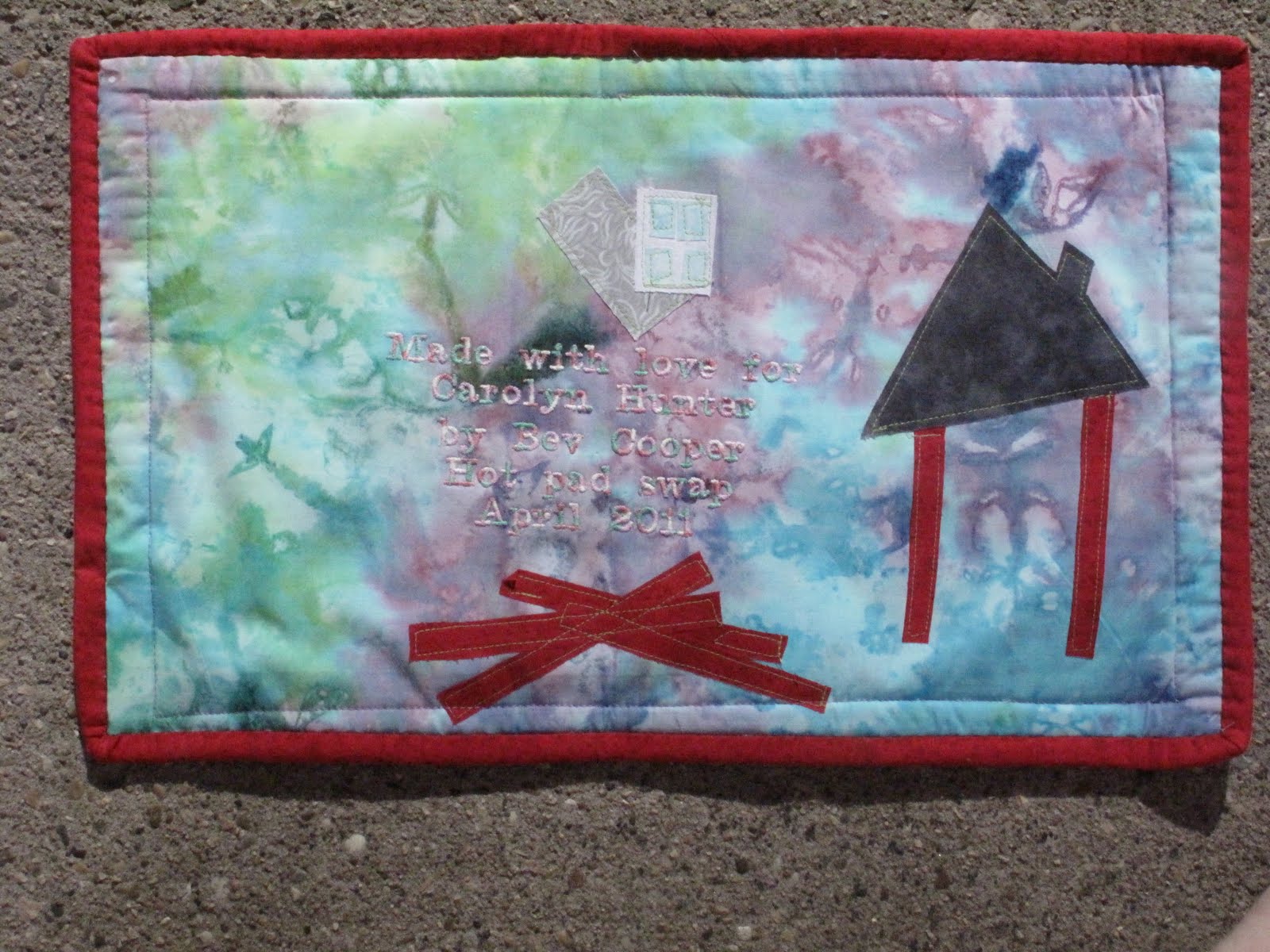 Sorry if these pictures are sideways, blogger keeps flipping my pictures on me. Gosh, check out that adorable button door knob! Dear Bev Cooper, you are awesome! Thank you for my amazing hot pad!